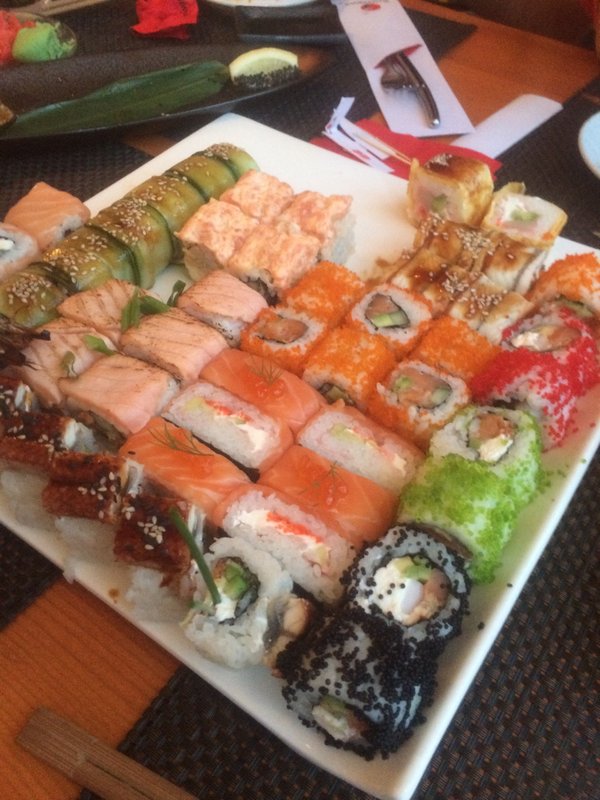 А ещё формат нашего заведения - суши-бар, рыбный ресторан и пиццерия.