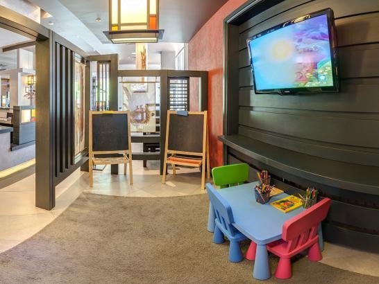У нас есть возможность подключиться к Wi-Fi, организован бизнес-ланч, работает доставка блюд в офис или на дом, доступны детская комната и банкетный зал - специально для вашего удобства.