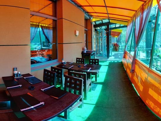 В тёплое время года гораздо приятнее находиться в открытом пространстве. И не только чтобы прогуляться, но и перекусить. Именно поэтому у японского ресторана Якитория имеется веранда с выходом на улицу.