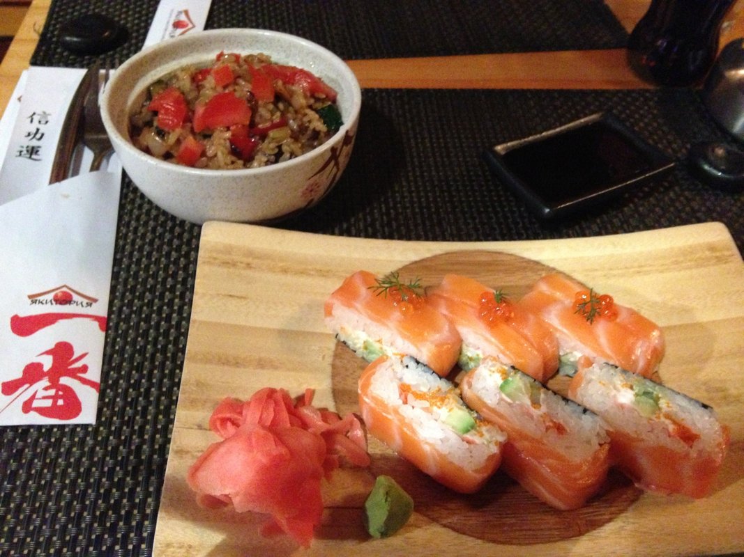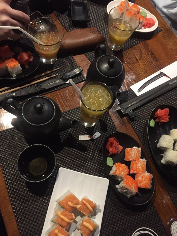 А ещё наше заведение работает как суши-бар и спорт-бар.