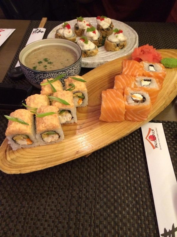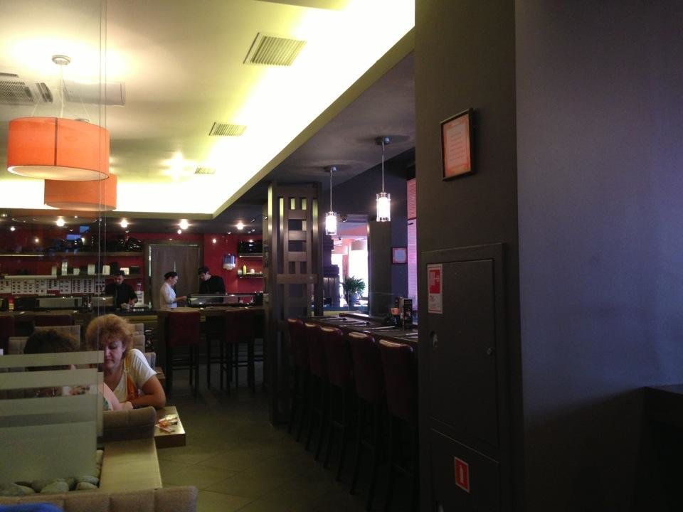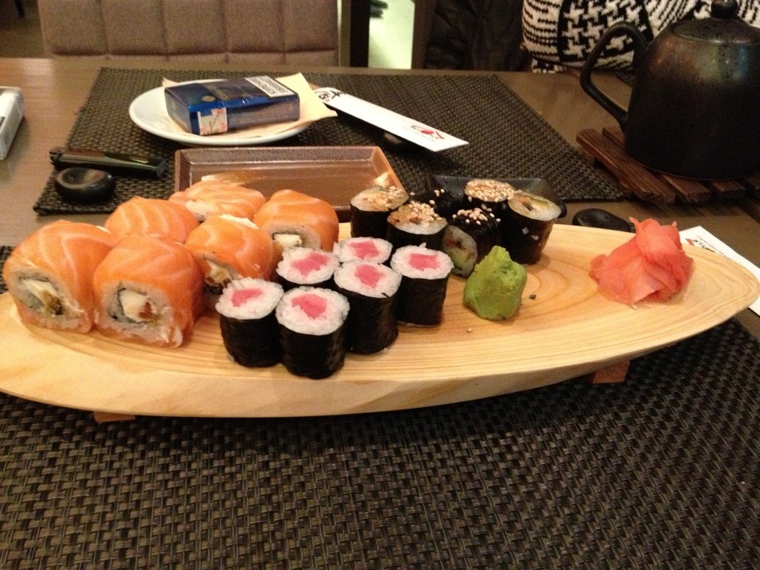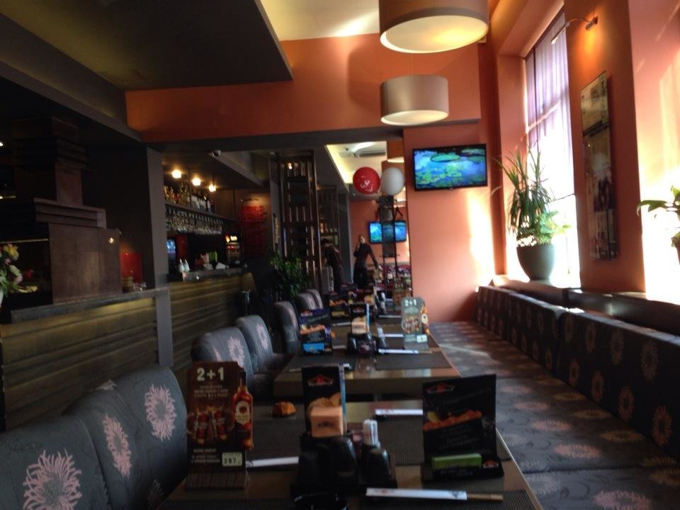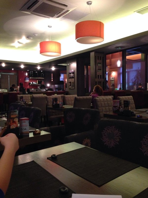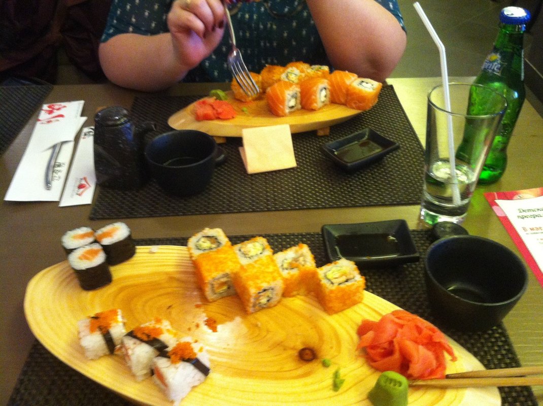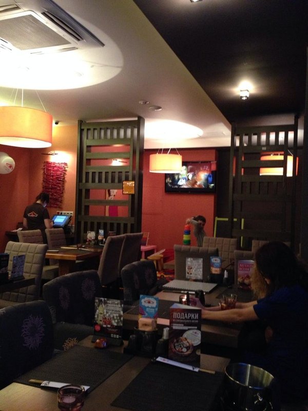А ещё наше заведение работает как суши-бар, рыбный ресторан, пиццерия и спорт-бар.