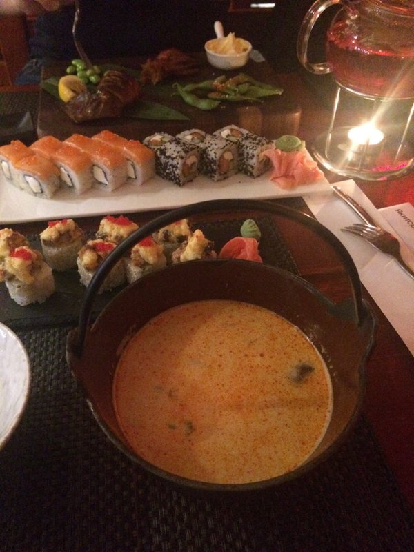 А ещё мы работаем как суши-бар и спорт-бар.