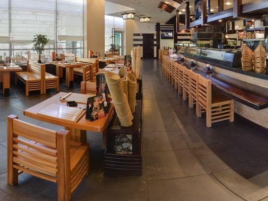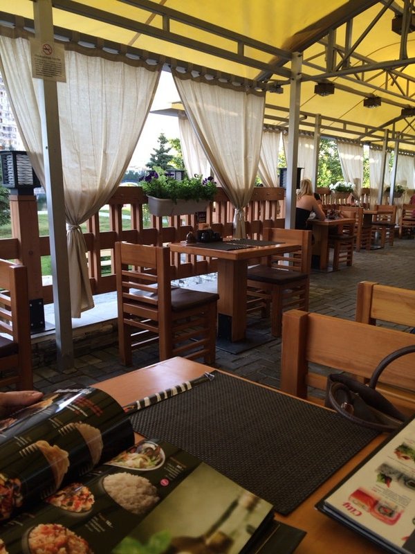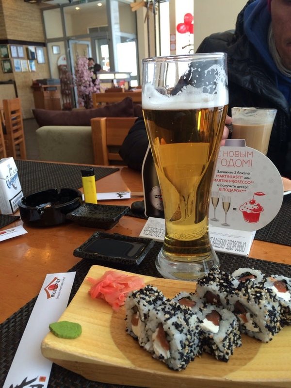 А ещё наше заведение работает как суши-бар, рыбный ресторан, пиццерия и спорт-бар.